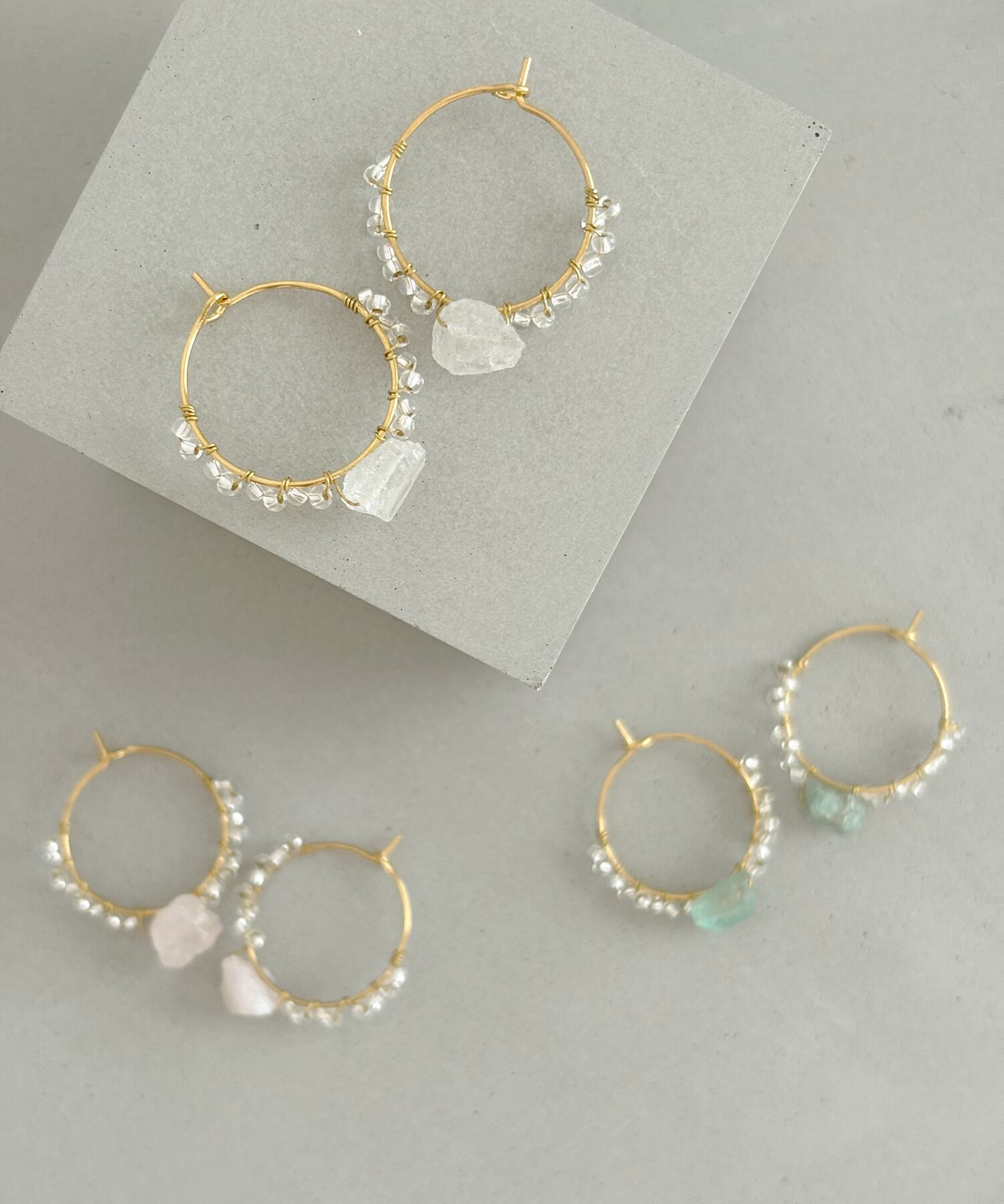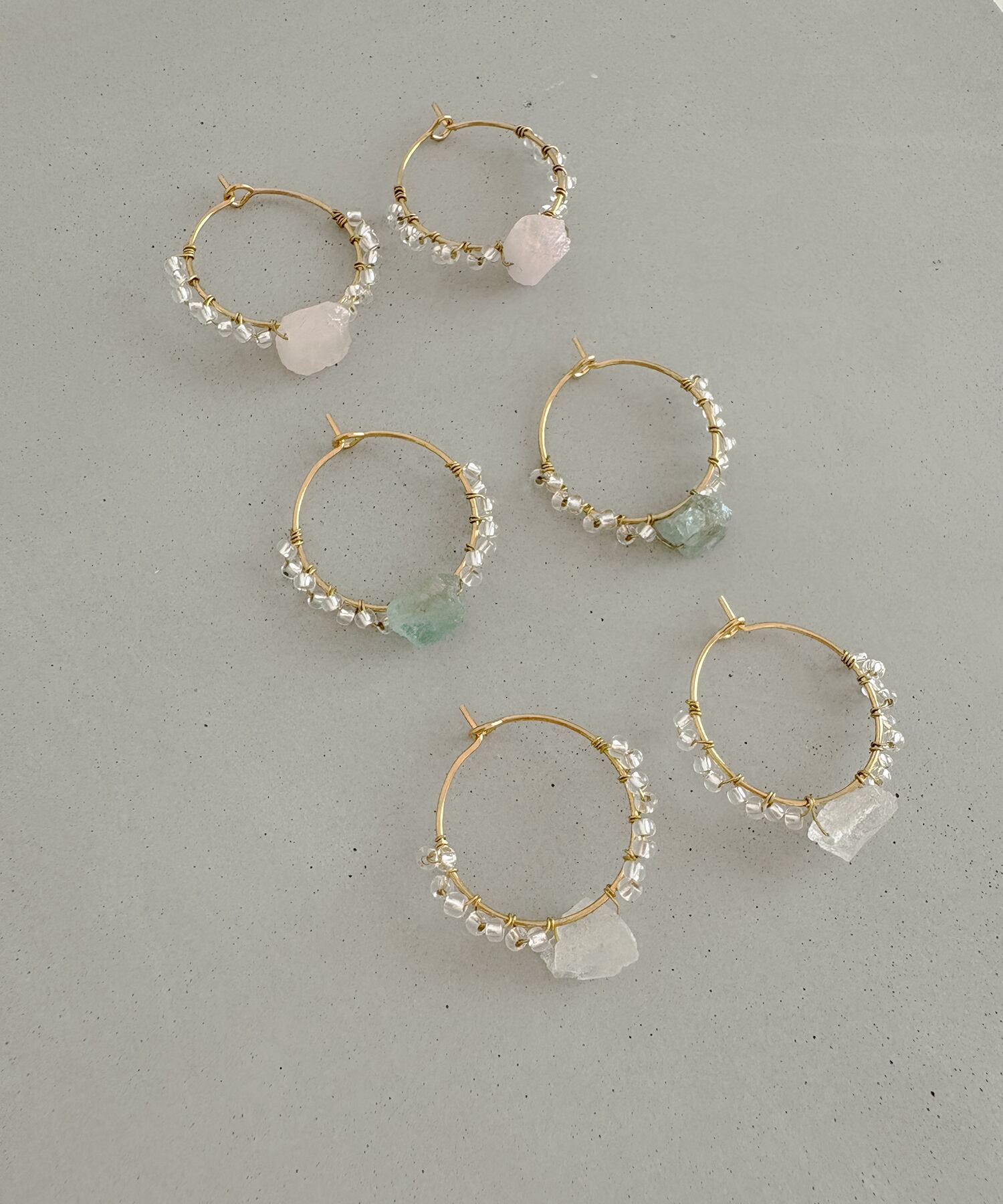 others: brass・alloy, beads, gem stone (ローズクォーツ, アパタイト, 水晶)
