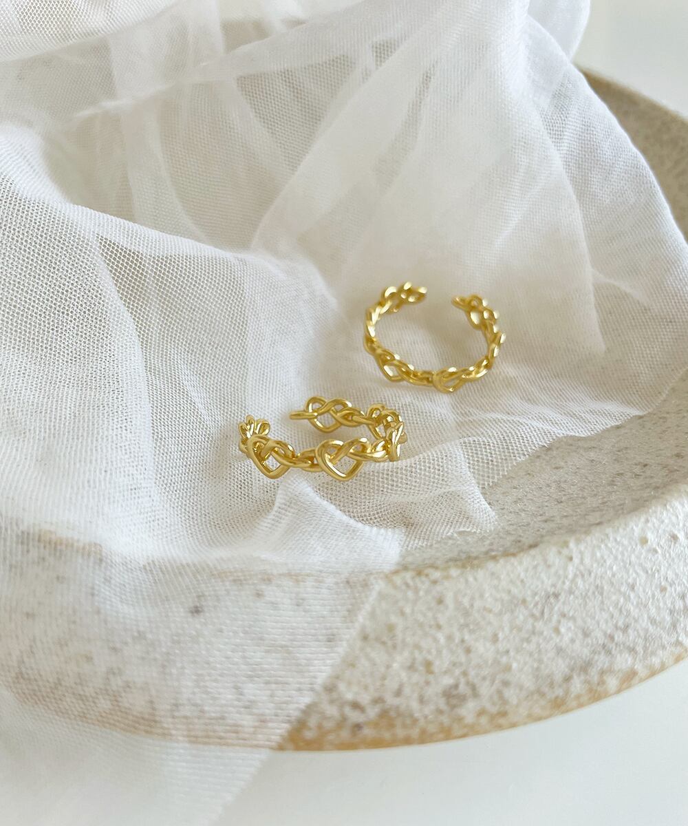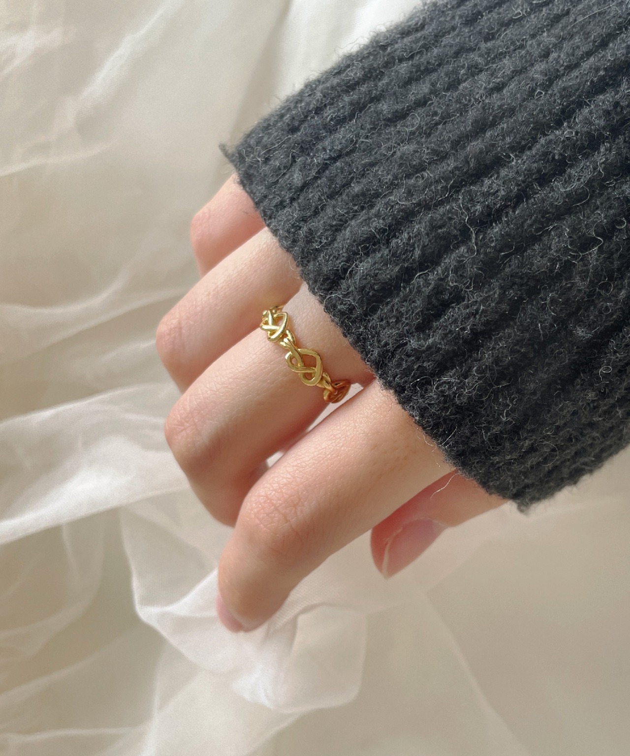 さりげないハートモチーフが甘すぎず大人かわいいノットデザインのリング.