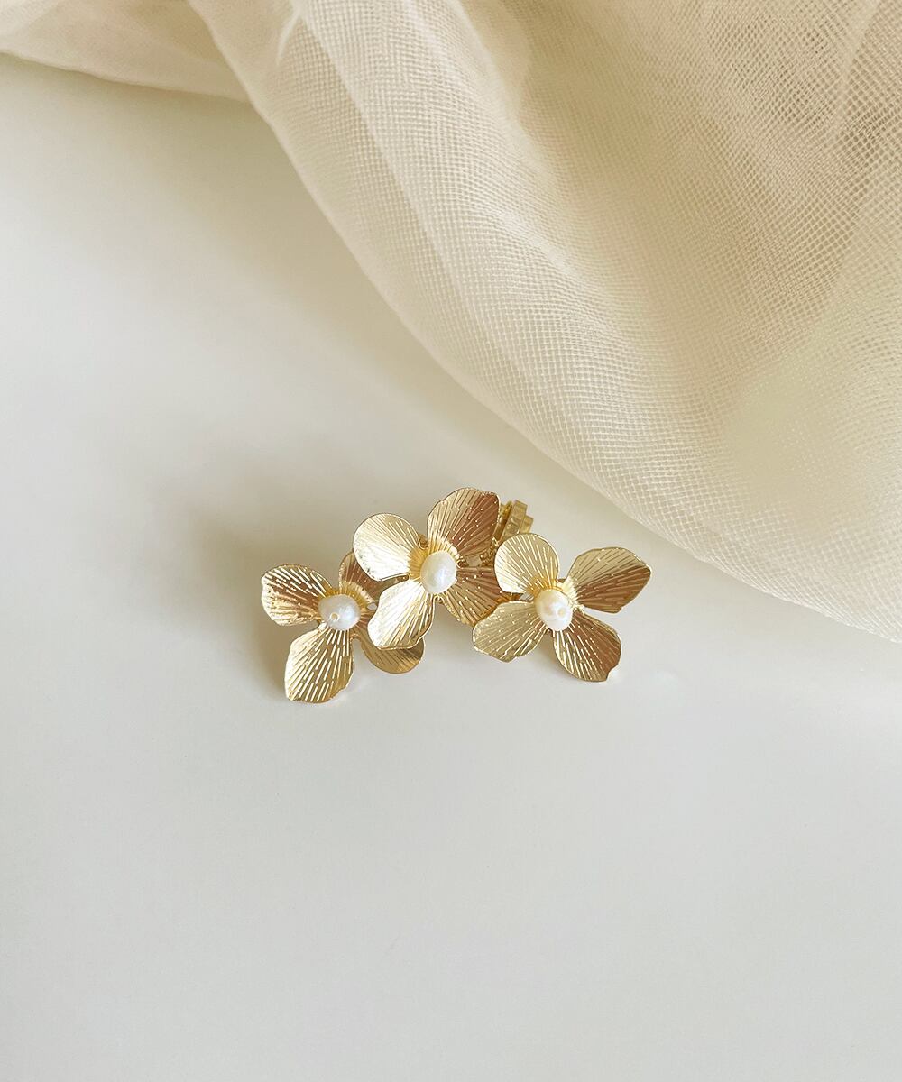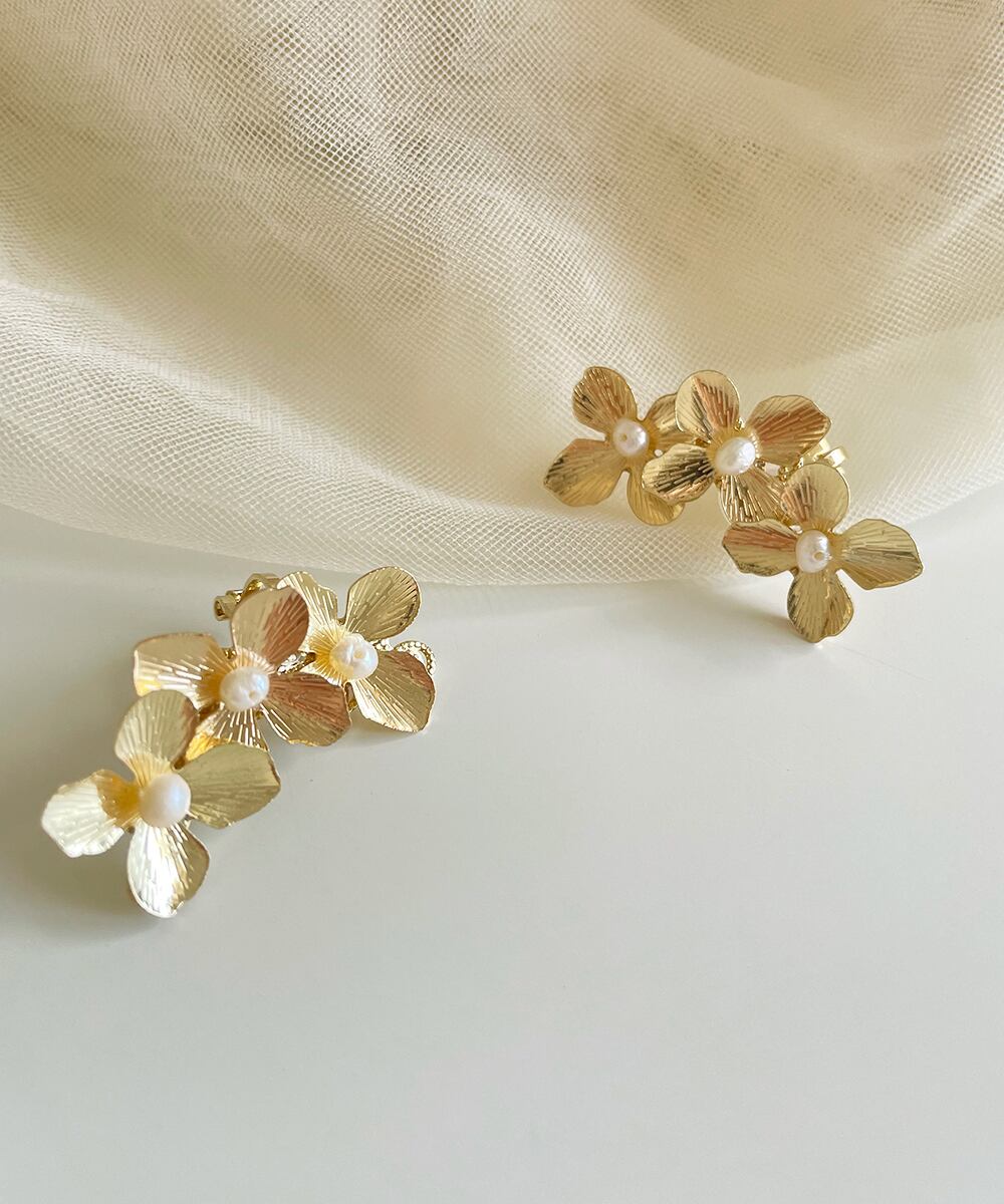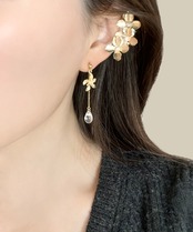 淡水パールとフラワーを編み込みながら形作るfleur (フルール) ear cuff.